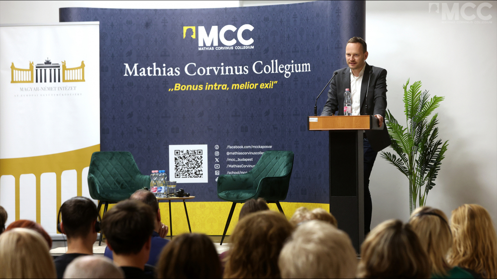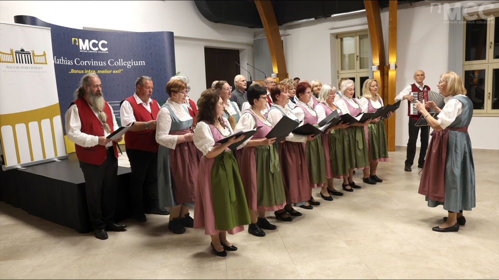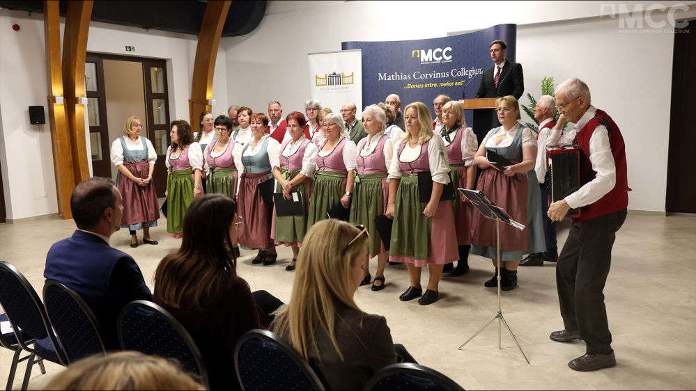 Die Veranstaltung wurde von Krisztián Erdei, dem Leiter des MCC Zentrums ins Kaposvár eröffnet. Als besonderes Highlight des Programms sang ein lokaler Chor in traditionellen Trachten deutsche Volkslieder. Danach gab Historiker Dr. Desiderius Meier einen Einblick in die Funktionsweise des deutschen politischen Systems und seine Ausgrenzungspraktiken und hob hervor, dass der Ausschluss der politischen Gegner in Deutschland keine neue Erscheinung ist. Er wies darauf hin, dass die nach dem Zweiten Weltkrieg falsch interpretierten moralischen Grundhaltungen bis heute wirksame Muster geprägt hätten, die seiner Meinung nach auch im heutigen öffentlichen Leben – unter anderem in der Beurteilung der ungarischen Regierung – zu beobachten seien. In seinem Vortrag ging Meier auch auf die politische Brandmauer um die Alternative für Deutschland (AfD) ein und betonte, dass die Ausgrenzung der oft als rechtsradikal bezeichneten Partei aus Politik und Medien keine neue Erscheinung ist, obwohl die AfD momentan die stärkste Oppositionskraft in Deutschland sei. Er skizzierte auch den Widerspruch, dass während der AfD häufig vorgeworfen wird, die demokratischen Spielregeln nicht einzuhalten, die Partei – nach eigener Beurteilung – in zahlreichen Bereichen systematische Diskrimination erfährt. Meier stellte anhand historischer Beispiele die Vorgeschichte dieser Praxis dar und führte das Publikum durch relevante Episoden der modernen deutschen Geschichte.