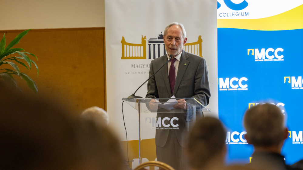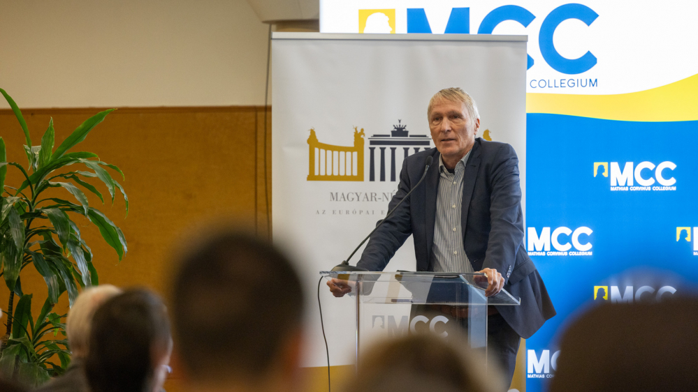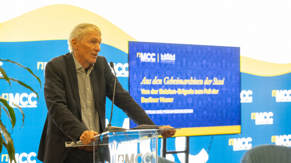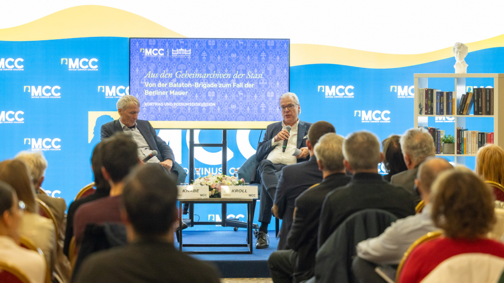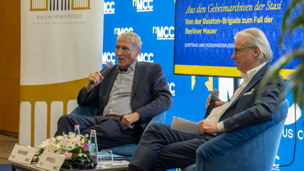 Rund 90 Interessierte versammelten sich auf Einladung des Deutsch-Ungarischen Instituts für Europäische Zusammenarbeit am 26. November 2025 im Mathias Corvinus Collegium, um dem Vortrag des deutschen Historikers Hubertus Knabe zum Thema „Aus den Geheimarchiven der Stasi – von der Balaton-Brigade zum Fall der Berliner Mauer“ zu lauschen. Im Namen des Deutsch-Ungarischen Instituts begrüßte Frank Spengler, Berater des Instituts, die Gäste und würdigte die herausragende Arbeit von Dr. Hubertus Knabe, dessen jahrzehntelange Forschung zur DDR-Geschichte und zur Staatssicherheit (Stasi) international große Anerkennung findet und maßgeblich zur Aufarbeitung der kommunistischen Diktatur in der DDR beiträgt.