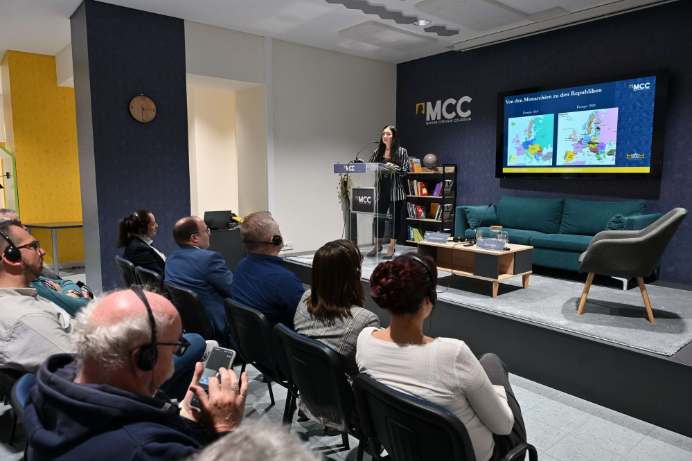 Am 10. März 2026 hielt Dr. Antonia Baraniuk, wissenschaftliche Mitarbeiterin am Lehrstuhl für Geschichte der Technischen Universität Chemnitz, im MCC-Bildungszentrum in Szabadka (Serbien) einen Vortrag mit dem Titel „Otto von Habsburg: Zwischen Deutschland, Österreich, Ungarn und Europa“. Die Diskussion im Anschluss an den Vortrag wurde von Dr. Bence Bauer, dem Direktor des Deutsch-Ungarischen Instituts für Europäische Zusammenarbeit, moderiert. Otto von Habsburg, der letzte Thronfolger der Österreichisch-Ungarischen Monarchie, bewegte sich an der Schnittstelle verschiedener nationaler Identitäten, was sein gesamtes Leben prägte. Er verstand die supranationale europäische Idee als Mittel zur Überwindung des Nationalismus und entwickelte sich nach dem Zweiten Weltkrieg von einem anfänglichen Befürworter der Habsburger-Restauration zu einem der bekanntesten Verfechter der europäischen Integration. In seinem Vortrag hob Baraniuk hervor, dass die persönliche Lebensgeschichte Ottos von Habsburg sowie seine in Deutschland, Österreich und Ungarn ausgeübten Tätigkeiten von besonderer Bedeutung sind, da sie die Entwicklung des politischen und kulturellen Denkens in Europa in der zweiten Hälfte des 20. Jahrhunderts beeinflusst haben. Obwohl er den größten Teil seines Lebens im Ausland verbrachte, blieb er „mit dem Körper Österreicher, aber mit der Seele Ungar“ und setzte sich intensiv für die europäische Integration Ungarns ein.