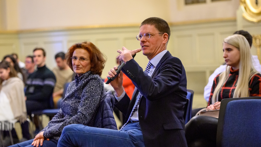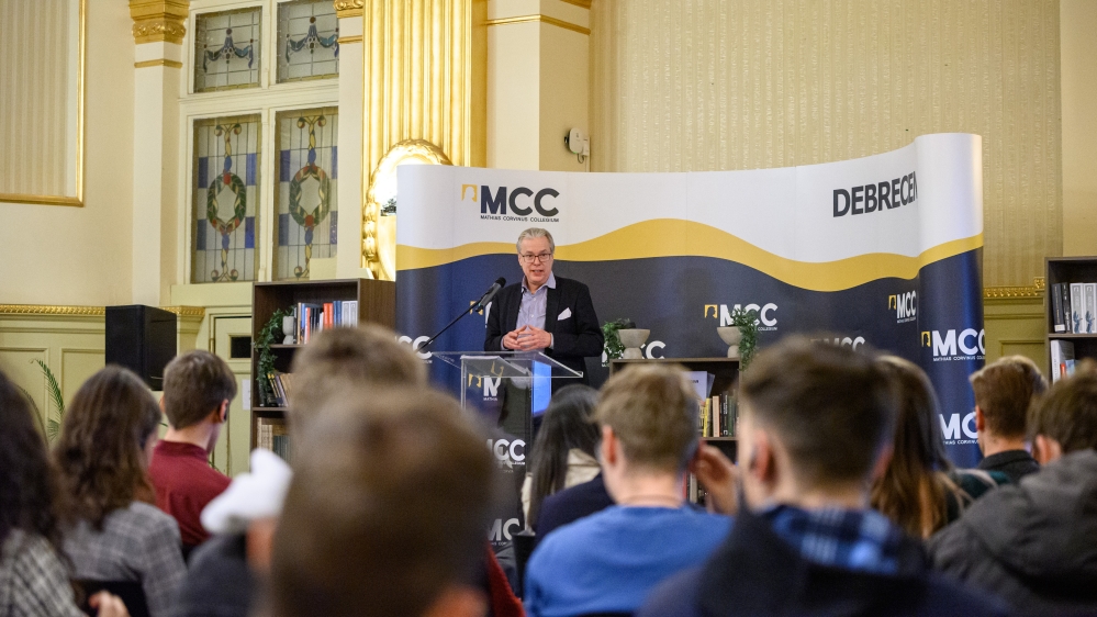 Bognár István, az MCC debreceni központjának igazgatója nyitotta meg a rendezvényt. Ezt követően Prof. Dr. Kroll, a Chemnitzi Műszaki Egyetem 19. és 20. századi történelem tanára, jelenleg Intézetünk vendégoktatója bemutatta az 1917-es év eseményeit, különös tekintettel az akkori parasztság sorsára. „A piacgazdaság háború utáni helyreállítása által a bolsevikok gyorsan megoldhatták volna a lakosság gondjait. Ehelyett az elnyomásra és a terrorra helyezték a hangsúlyt, azzal a céllal, hogy a saját maguk által okozott problémákkal megbirkózzanak”, összegezte Kroll professzor.