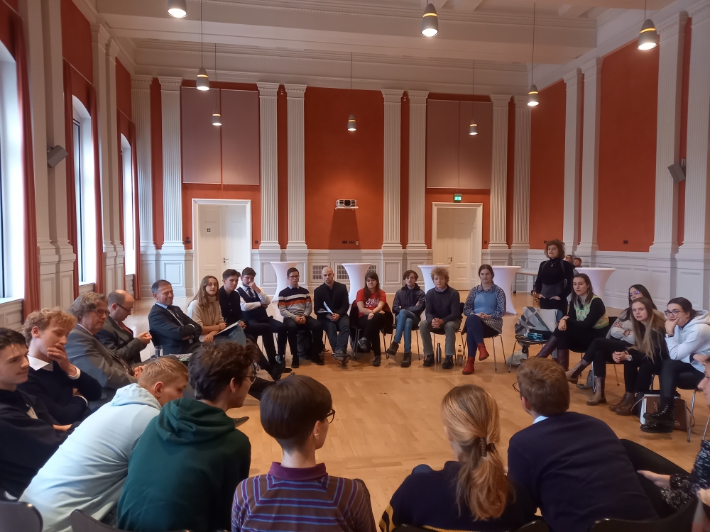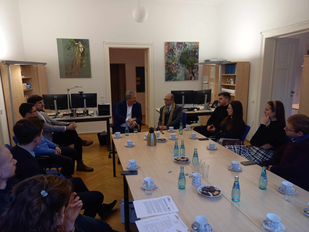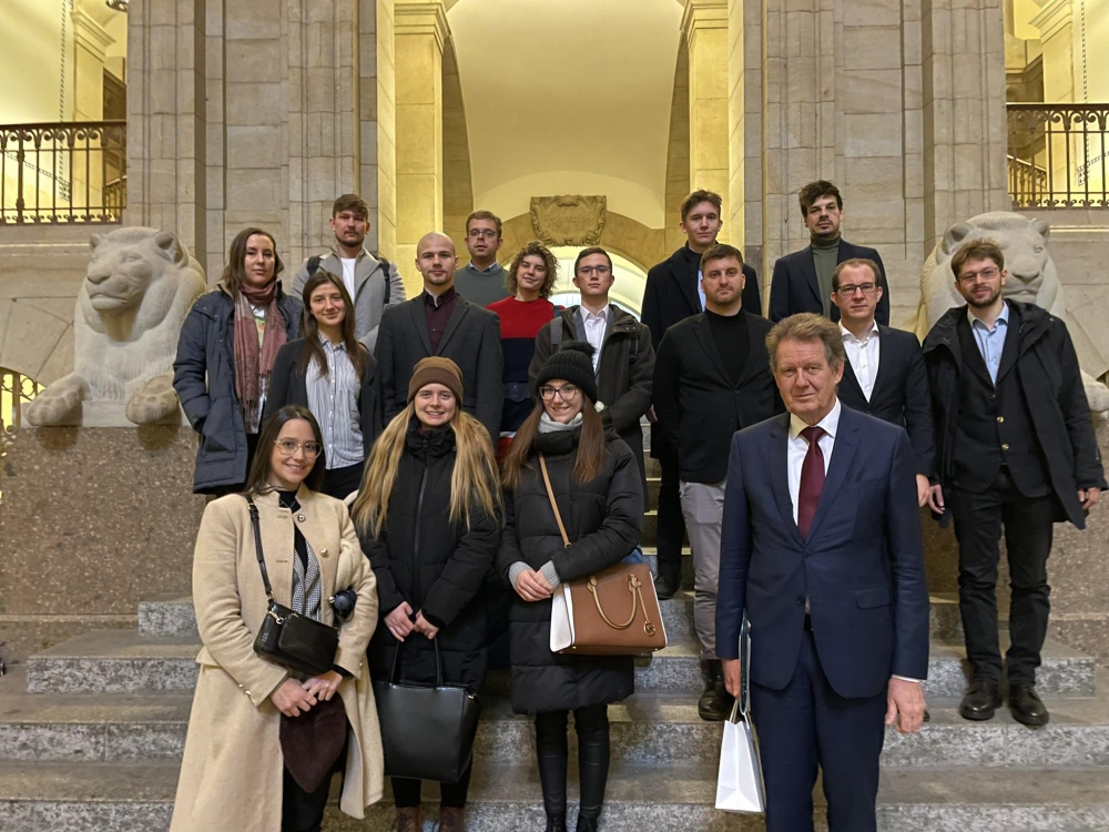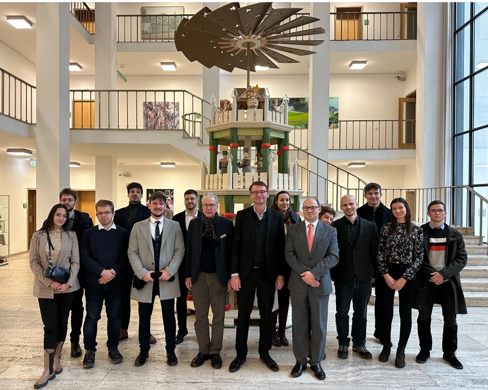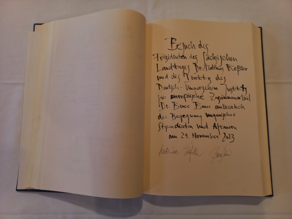 A szerdai napot a csoport Prof. Dr. Roland Wöllernél (CDU), tartományi parlamenti képviselőnél, korábbi tartományi miniszternél kezdte. A diákok főként aktuális politikai témákban gazdagodtak új ismeretekkel, de Wöller, a közgazdaságtan professzoraként többek között az inflációról, a demográfiai változásokról is szót ejtett, amelyek óriási kihívásokat jelentenek a német gazdaság számára, valamint napjaink egyik legvitatottabb témájáról, a migrációról is megosztotta gondolatait. A beszélgetés után a Szászországi Evangélikus Egyház közigazgatási központjánál tett látogatást a csoport, ahol Dr. Thilo Daniel püspökhelyettes fogadta a diákokat a hivatal könyvtárában egy beszélgetésre, amelynek középpontjában a keresztény egyházak csökkenő tagszáma a volt NDK területén, valamint az álltak, hogy milyen kihívások elé állítja az egyházakat az Ukrajnából és Európán kívülről érkező menekültek befogadása. Ezután a Drezdai Műszaki Egyetemen Prof. Dr. Michael Beckmann, az egyetem Folyamat- és Környezetmérnöki Intézetének igazgatójával találkozhatott a csoport aki egy input-előadást tartott azokról az energetikai kihívásokról, melyek előtt Németország és a megújuló energiaforrásokra való átállás állnak. Ezen kívül a diákok betekintést kaptak az egész átalakulási folyamat nehézségeibe és rizikóiba is, amelyekre még sok esetben nincs működőképes megoldás kidolgozva.