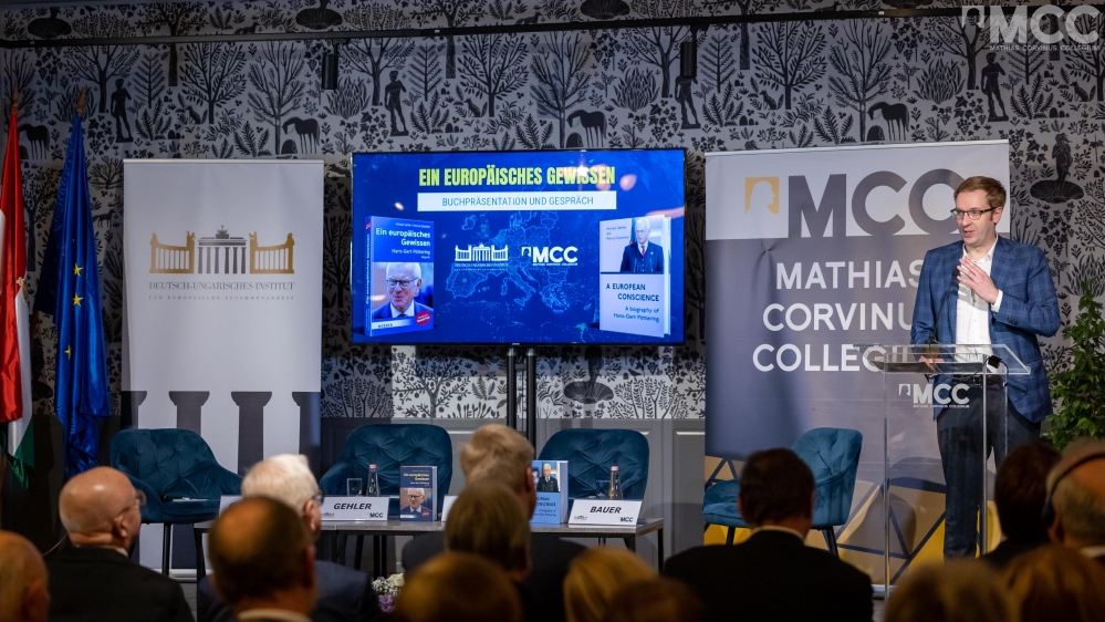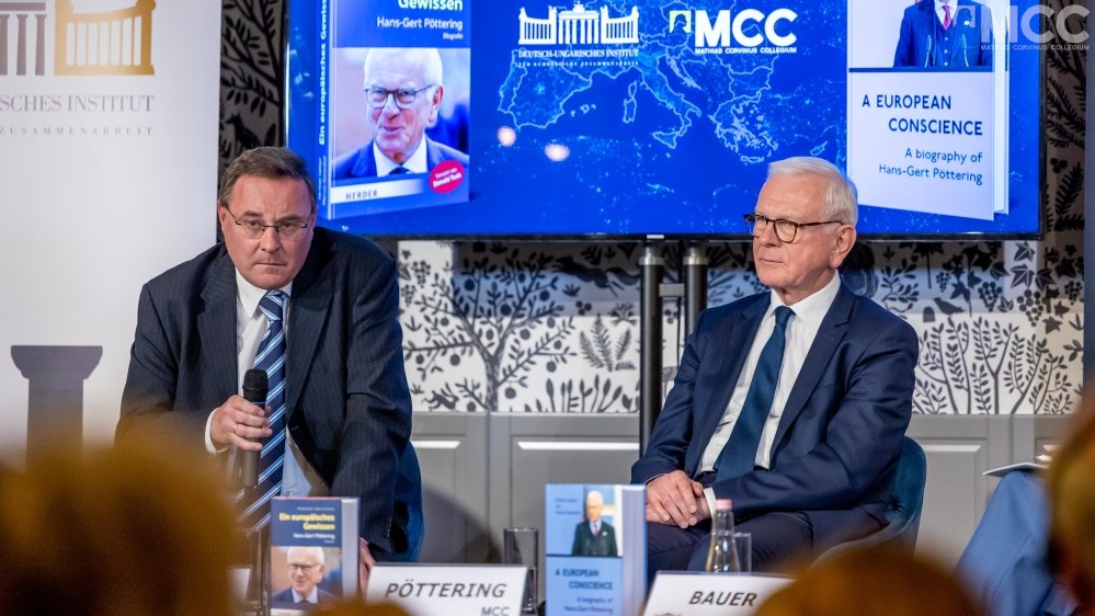 2023. február 15-én a Magyar Német Intézet az Európai Együttműködésért könyvbemutató és pódiumbeszélgetés keretében közel 120 vendég előtt mutatta be Prof. Dr. Michael Gehler és Dr. Marcus Gonschor által írt „Egy európai lelkiismeret” című könyvet, mely Prof. Dr. Hans-Gert Pöttering életét és karrierútját ismerteti, különös hangsúlyt fektetve a politikus az európai integrációs folyamatokra gyakorolt hatásáról.