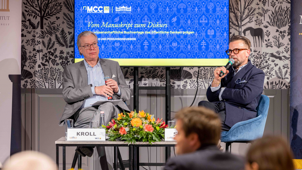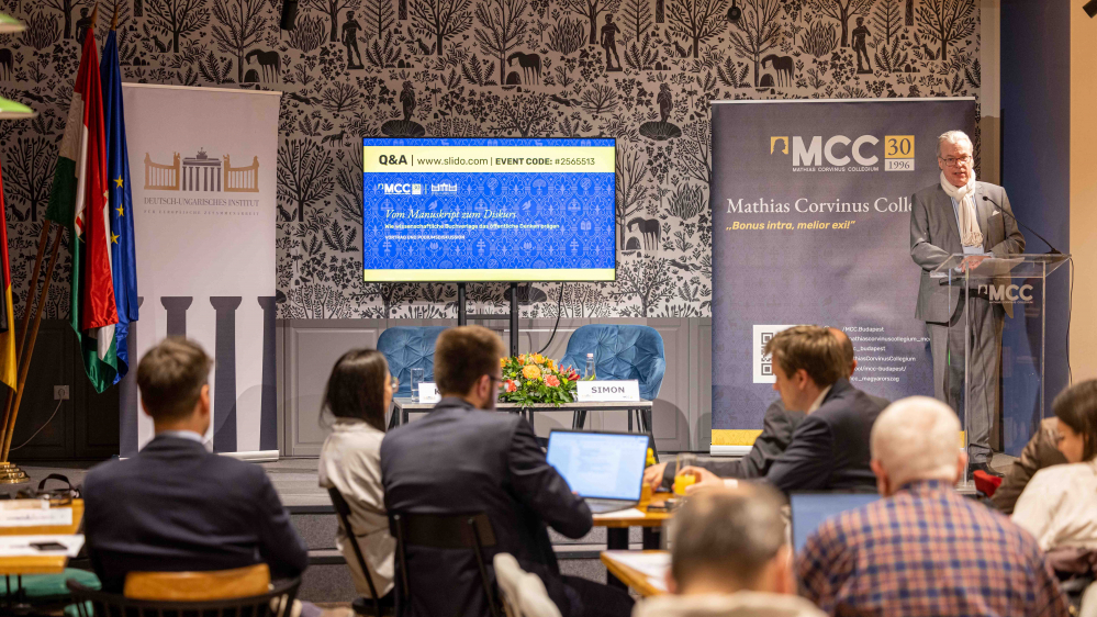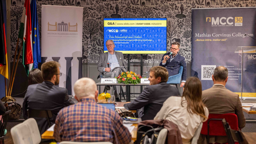 2026. március 25-én „A kézirattól a diskurzusig – Hogyan alakítják a tudományos könyvkiadók a közgondolkodást” címmel adott elő Dr. Florian Simon, a legnevesebb német tudományos kiadó, a Dunker&Humblot ügyvezető igazgatója a Magyar-Német Intézet az Európai Együttműködésért szervezésében az MCC Budapesti Központjában. Az előadást követő beszélgetést Dr. Frank-Lothar Kroll, a Chemnitzi Műszaki Egyetem 19–20. századi európai történelem professzora moderálta. Az est mintegy 40 érdeklődőt számlált.