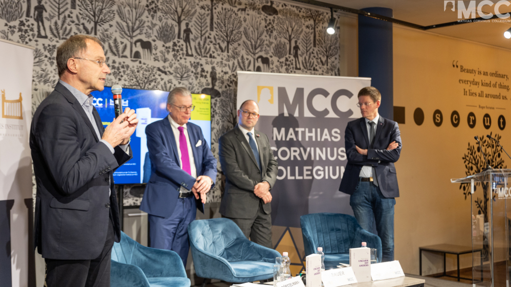 A rendezvényt Dörstelmann-Fodor Kinga, a Magyar-Német Intézet igazgatóhelyettese nyitotta meg. Ezután Szalai Zoltán, a Mathias Corvinus Collegium főigazgatója köszöntőjében ismertette az intézet létrejöttének történetét, valamint külön köszönetet mondott az intézet munkatársainak, valamint Bauer Bence igazgatónak, a könyv serzőjének és Frank-Lothar Kroll professzornak, a könyv szerkesztőjének.