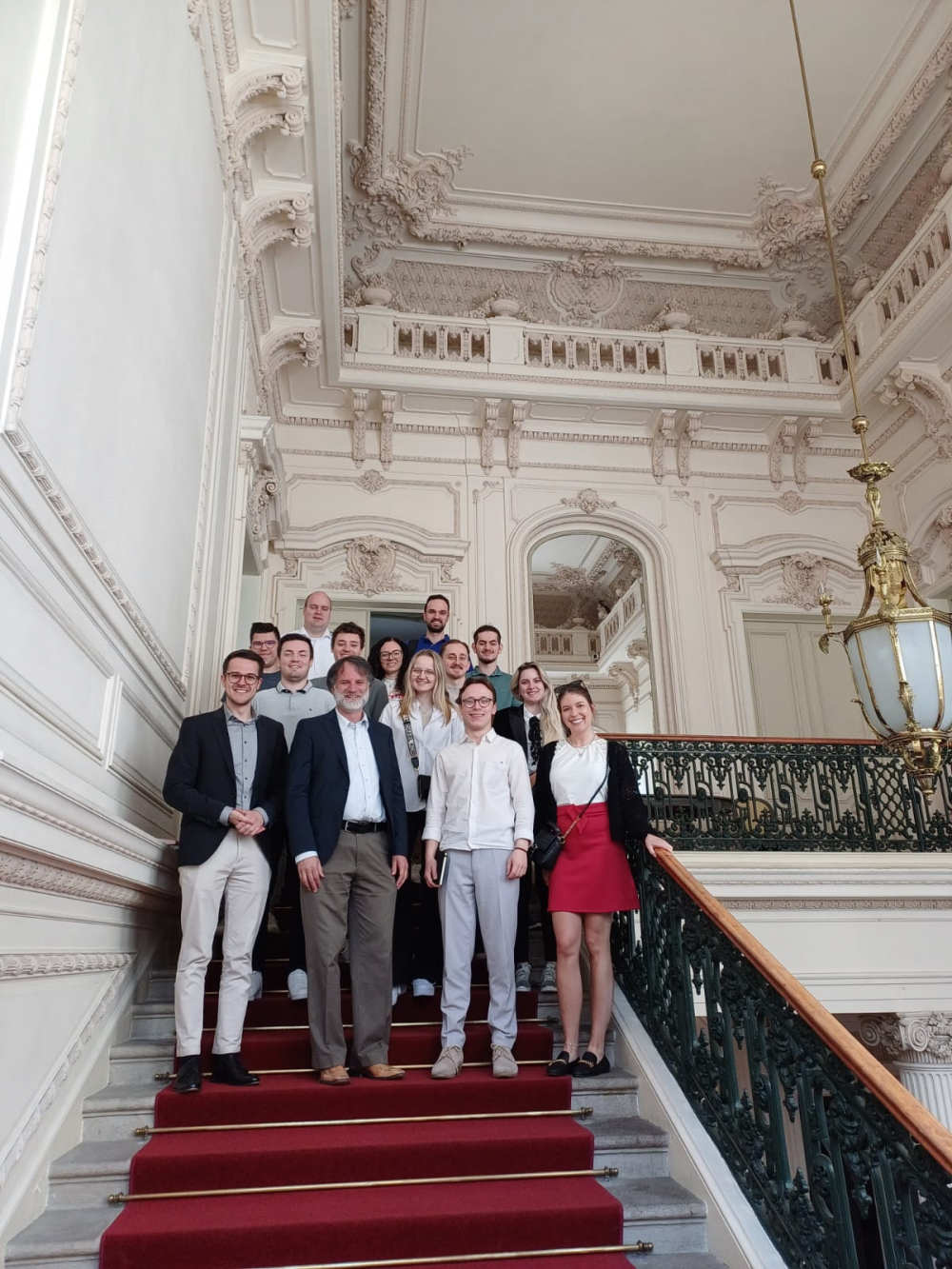 A tanulmányút első napján a csoport látogatást tett a Mathias Corvinus Collegiumnál, ahol Dr. Bauer Bence tartott előadást a Magyar-Német Intézet küldetéséről, a magyar-német kapcsolatok alakulásáról és a magyar politikai rendszerről. A csoport ezt követően a parlamentbe látogatott, ahol fogadta őket Dr. Illés Boglárka, a Külügyminisztérium újonnan kinevezett külügyi álamtitkára, majd a beszélgetést követően az Országgyűlésben vezetett látogatáson vettek részt vendégeink. A nap második felében a csoport látogatást tett az Európai Ügyek Minisztériumában, ahol Dr. Molnár Balázs Péter Európa-politikáért felelős helyettes államtitkártól első kézből tájékozódhattak a tavasszal esedékes EP-választásokról és a magyar pozícióról.