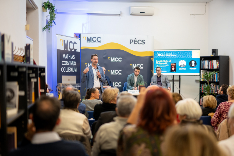 2024. november 26-án este a MCC Pécsi Oktatási Központjában került sor Klaus-Rüdiger Mai német író és filozófus „Angela Merkel – Zwischen Legende und Wirklichkeit” (Angela Merkel – Leganda és valóság között) című könyvének magyarországi ősbemutatójára. A könyvbemutatón és az azt követő panelbeszélgetésen mintegy ötven fős publikum vett részt. Érdekesség, hogy a könyvbemutatóra Angela Merkel saját önéletrajzának németországi bemutatójával egy időben került sor, amely a beszélgetésnek egy újabb dimenziót adott. Az est moderátora Ivan Stecher, az MCC vendégkutatója volt. A szerző bevezető előadását panelbeszélgetés követte, ahol élénk eszmecsere alakult ki az író és Alexander Rasthofer, a Magyar-Német Intézet az Európai Együttműködésért kutatója között.