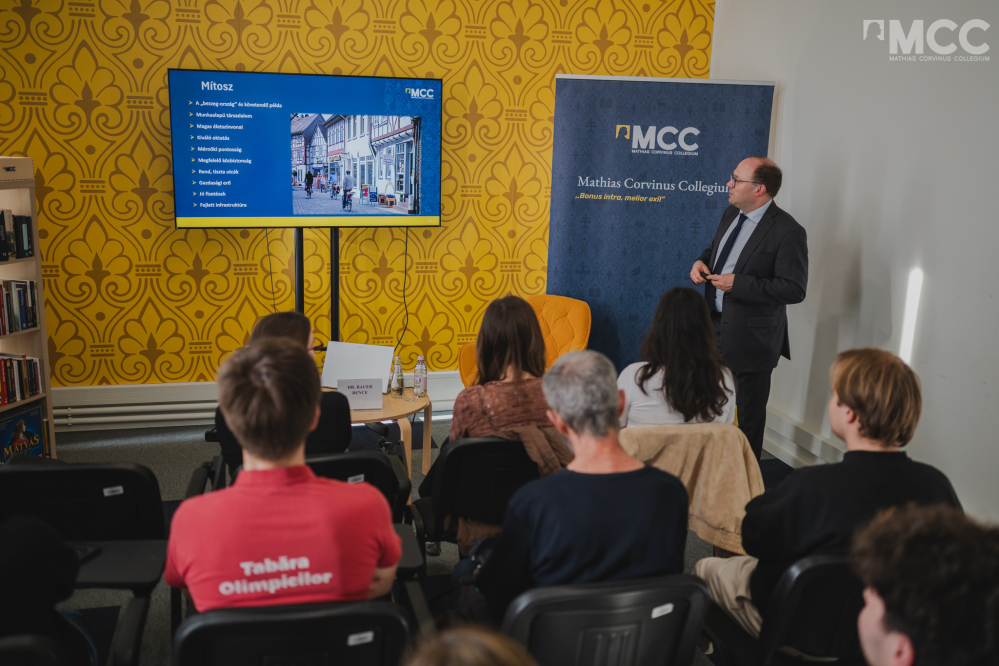 Az MCC Kolozsvári Képzési Központjában tartott előadásában Bauer a magyar-német kapcsolatokat illetően elmondta, a fegyelem és a rend képzete mellett számos különbség is megfigyelhető a két nemzet történelmi tapasztalatai és társadalmi berendezkedése között. Hangsúlyozta, hogy a magyarokról és a németekről kialakult történelmi képek a mai napig hatással vannak a két ország kapcsolatára. A múltból örökölt elképzelések sok esetben ma is befolyásolják azt, hogyan tekint egymásra a két társadalom. Az eseményen arról is szó esett, hogy az utóbbi években egyre több német választja lakóhelyéül Magyarországot. Ennek hátterében több tényező is állhat: a kedvezőbb megélhetési költségek, a biztonságosabbnak érzékelt társadalmi környezet, valamint az ország kulturális és természeti adottságai is vonzóvá teszik Magyarországot a németek számára. Az eseményen a hallgatóság átfogó képet kaphatott a magyar-német kapcsolatok történelmi hátteréről, valamint arról, hogy ezek miként formálják napjaink gazdasági, politikai és társadalmi kapcsolatait.