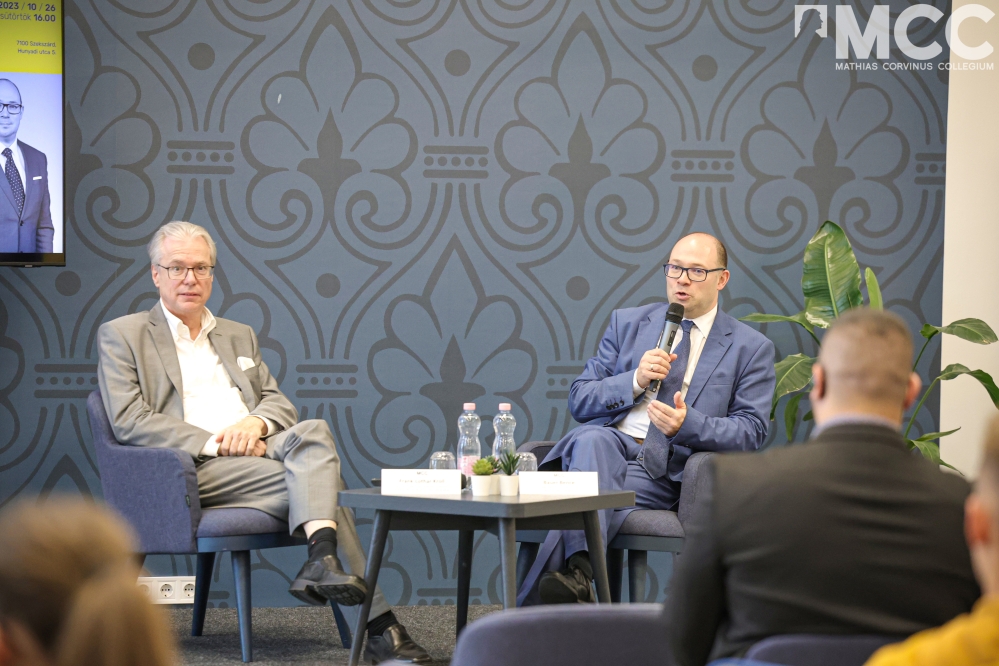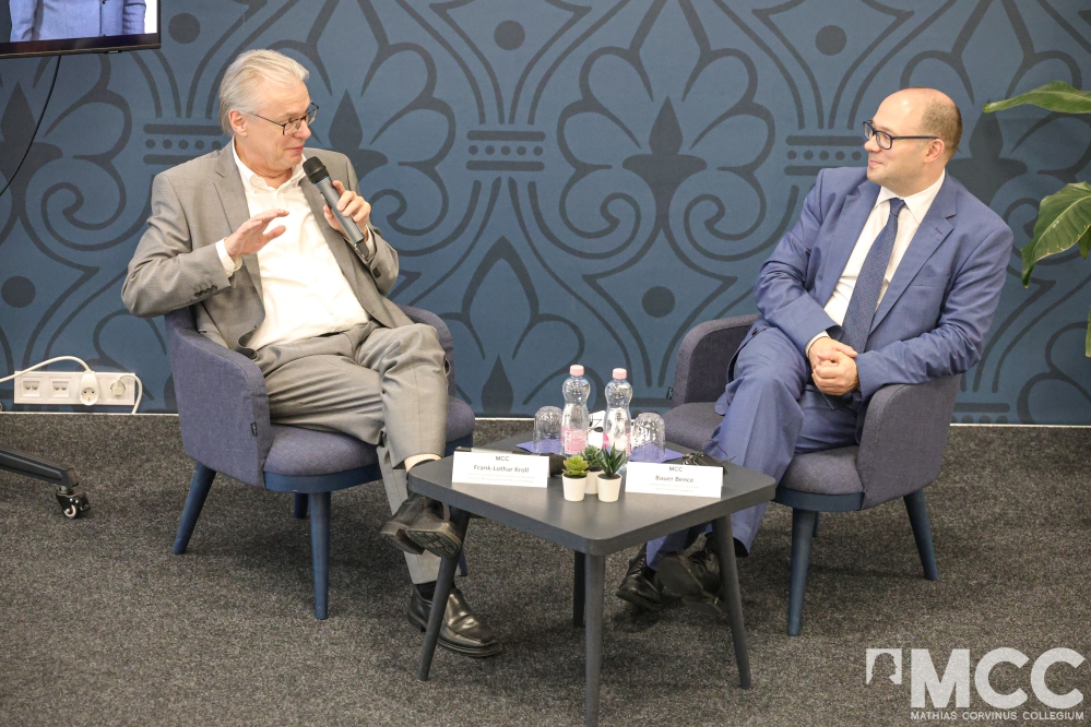 Németország 33 évvel a békés és szabad újraegyesítés után még mindig széttagolt. Minderről Prof. Dr. Frank-Lothar Kroll, a Chemnitzi Műszaki Egyetemen munkatársa beszélt a szekszárdi MCC vendégelőadójaként. A 19. és 20. századi európai történelem szakterület professzorát Bauer Bence a Magyar-Német Intézet az Európai Együttműködésért igazgatója kérdezte a nagy sikerű pódiumbeszélgetés alkalmával.