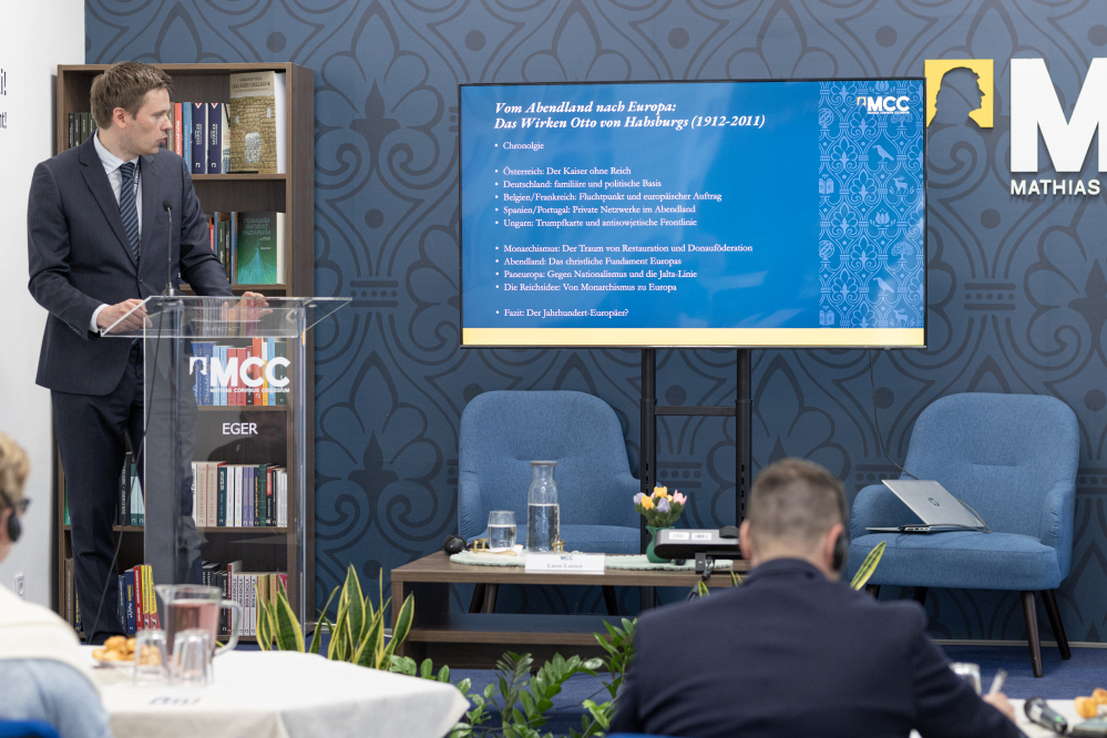 2026. április 1-jén Egerben került sor egy előadással egybekötött szakmai beszélgetésre, amelyet a Magyar–Német Intézet az Európai Együttműködésért és az MCC egri képviselete szervezett. Az esemény középpontjában Dr. Lasse B. Lassen, intézetünk vendégoktatójának „Nyugatról Európáig – Habsburg Ottó munkássága” című előadása állt, amely Habsburg Ottó életét és európai gondolkodását, lelkületét mutatta be. A rendezvényen mintegy 15 érdeklődő vett részt.