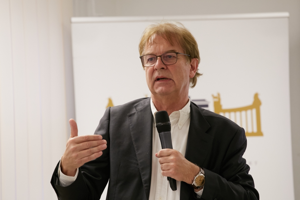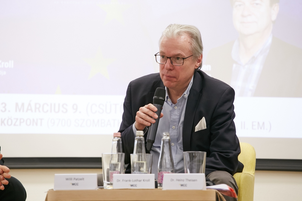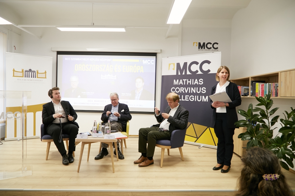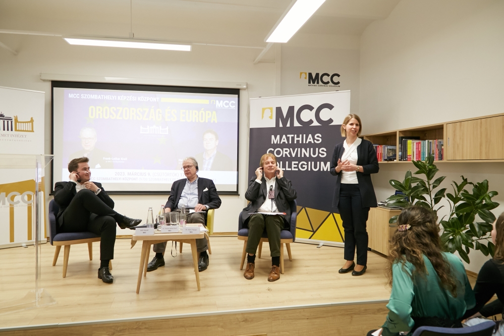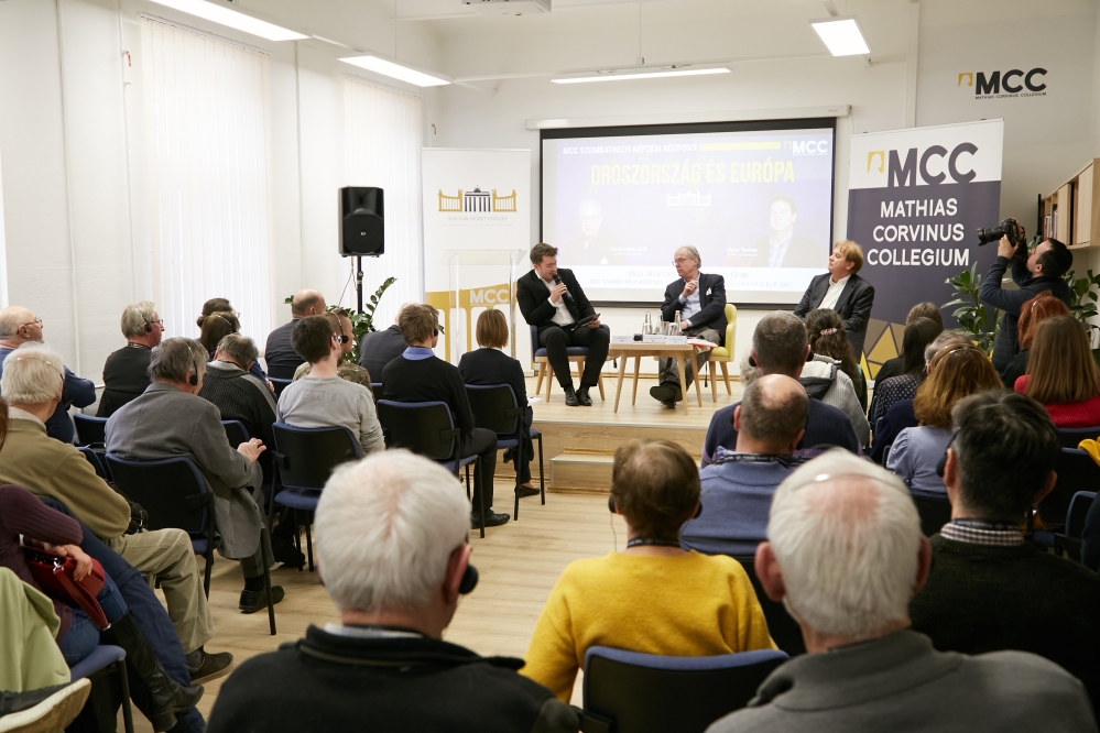 Das Thema „Russland und Europa“ wird auf Jahre hin das bestimmende Thema europäischer und weltweiter Sicherheitspolitik bleiben. Dementsprechend groß war das Interesse an der Diskussionsveranstaltungen im MCC Szombathely am 9. März 2023 mit ca. 60 Gästen. Moderiert von Willi Patzelt, erörterten der Historiker Prof. Dr. Frank-Lothar Kroll und Politikwissenschaftler Prof. Dr. Heinz Theisen - beide derzeit Visiting Fellows am Deutsch-ungarischen Institut für europäische Zusammenarbeit des Mathias Corvinus Collegiums - die drängenden Fragen zum Krieg in der Ukraine und der Rolle Russlands in der Welt.