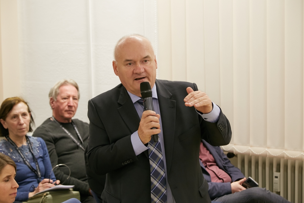 In seinem Einführungsreferat ging Prof. Kroll hierbei auf die historische Entwicklung Russlands hin zu Putin ein und zeigte die geschichtliche Dimension der Abkehr Russlands hin zur Europäisierung durch die Oktoberrevolution 1917 auf. Seit diesem Ereignis, so Kroll, sei von damals sowjetischem Boden außenpolitisch kaum gutes ausgegangen; Putins Aggression stünde in dieser Tradition. Die Ukraine verdiene im Freiheitskampf die Unterstützung der Europäer, die wiederum auf die USA als Unterstützungsmacht angewiesen seien.