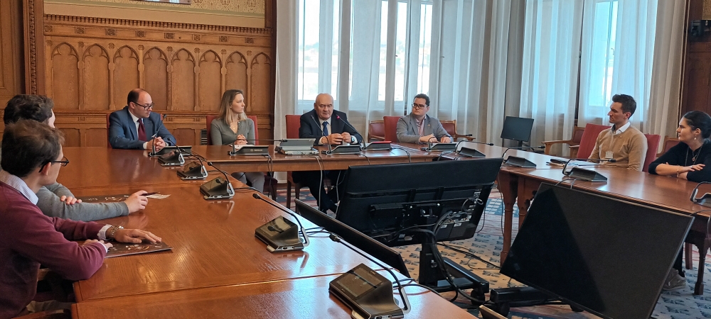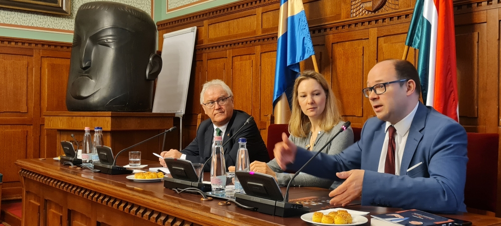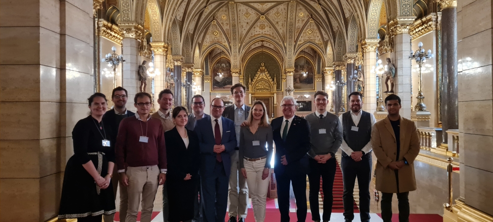 Csütörtökön délelőtt a szakmai program a magyar Országgyűlés épületében kezdődött. A parlamenti látogatás során a delegáció tagjai Ritter Imrével, a magyarországi németek első országgyűlési képviselőjével találkozhattak és lehetőségük nyílt szakmai beszélgetést folytatni a magyar kisebbségpolitikáról, a nemzetiségi bizottság munkájáról és a magyarországi németek helyzetéről. Ezt követően a delegáció Dr. Hende Csabát, az Országgyűlés alelnökét látogatta meg. Hende Csaba jelenleg a Törvényalkotási Bizottság elnöke is, korábban 2015-ig volt honvédelmi minisztert. Hende úrral a magyar kül-, honvédelmi és biztonságpolitikáról, Oroszország Ukrajna elleni háborújáról, a magyar történelemről és a kereszténység szerepéről beszélgettek a delegáció tagjai. Ezt követően tárlatvezetést kaptak a Parlament épületében.