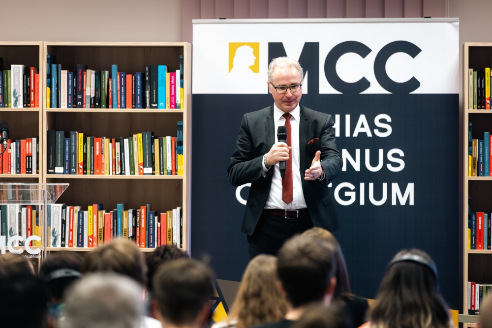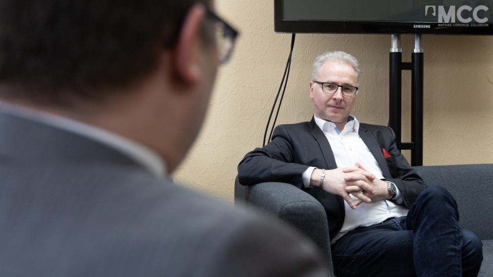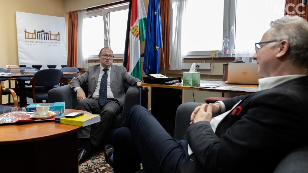 A látogatói program részeként Prof. Sinn Budapesten az MCC munkatársai közül, Dr. Mernyei Ákos kutatóval és Prof. Dr. Varga István Műhelyvezetővel találkozott az MCC Egyetemi programjának Magánjogi Műhelyéből, illetve Dr. Csúri Andrással, a Büntetőjogi Műhelyvezetőjével.