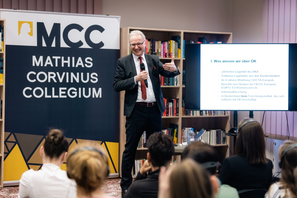 Marlon Brando és Al Pacino óta sokan a szervezett bűnözést a maffia keresztapjával asszociálják, aki egyik kezében egy unokát, a másikban egy pohár vörösbort tart. „El kell búcsúznunk ettől a képtől, mert ez a keresztapa nem létezik” - mondta Prof. Dr. Prof. h. c. Arndt Sinn, az Osnabrücki Egyetem német és európai büntetőjog és büntetőeljárási, nemzetközi büntetőjogi és összehasonlító büntetőjogi professzora. Sinn professzor „Szervezett bűnözés Németországban és Európában” című előadásán 2023. március 22-én mintegy 80 vendég vett részt az MCC Szegedi képzési központjában.