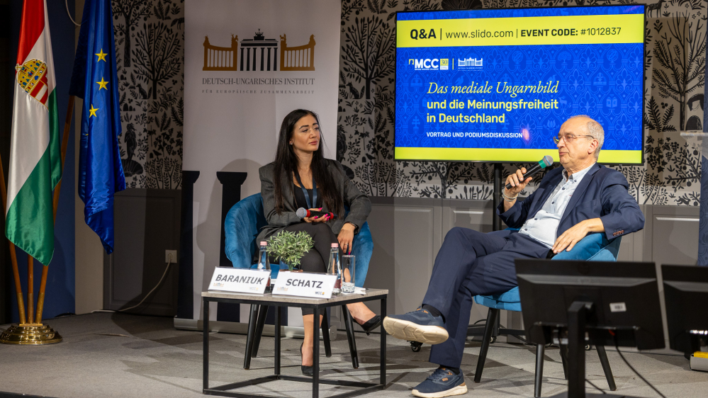 Als einen weiteren Aspekt, wie die Medien (auch unfreiwillig) zum gesellschaftlichen Vertrauensverlust beitragen, nannte Schatz die überwiegend negative Natur der deutschen Berichterstattung. Untersuchungen zeigten, dass sowohl Politiker als auch Parteien einem überwiegend negativen Medienecho ausgesetzt sind. Auch im Bereich der Wirtschaft ist dieser Trend zu beobachten – dort dominieren nicht etwa Erfolgsnachrichten und Neugründungen, sondern Insolvenzen, Standortschließungen und Entlassungen. Auch Ungarn sehe sich laut Schatz in dieser Negativberichterstattung gefangen. Dies sei jedoch weniger auf eine intrinsische Ungarnfeindlichkeit zurückzuführen, sondern zum Großteil auf die Natur der deutschen Berichterstattung. Das große Interesse des Publikums zeigte sich in einer engagierten Fragerunde; der Abend klang in persönlichen Gesprächen mit dem Referenten und Moderator aus.